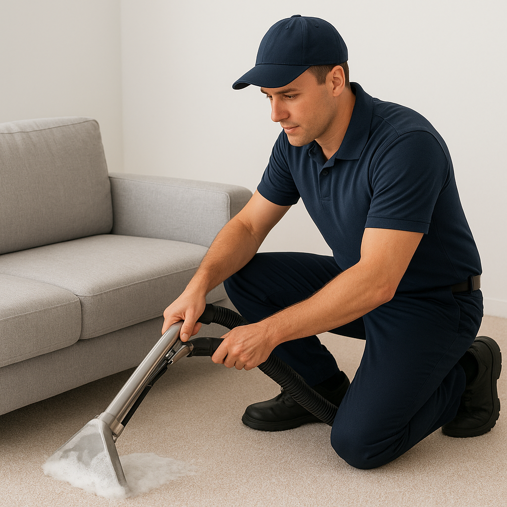 Lavado profesional: Uso de máquinas fregadoras, inyección-extracción o limpieza a vapor según el tipo de tejido, aplicando detergentes o shampoo específicos para alfombras y tapetes.